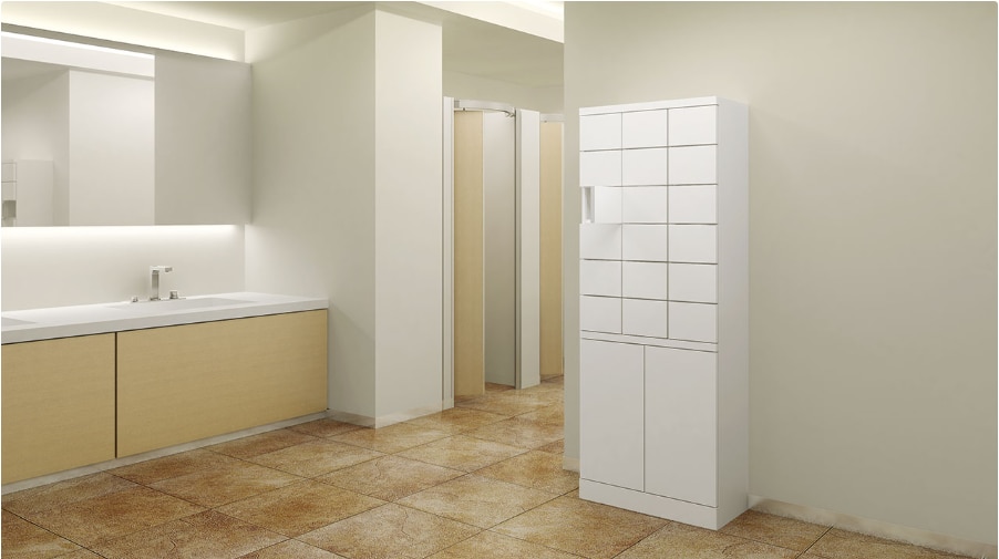 オフィスのトイレでは、細々したものが多く、特に小物の扱いに困ることが少なくありません。そこで役立つのが小物入れです。ちょっとしたスペースに小物入れを設置することで、整然とした環境を保つことができます。Respiaは、薄型で鍵の取り付けも可能なため、狭いスペースでも設置しやすく、プライバシーにも配慮できる小物収納です。