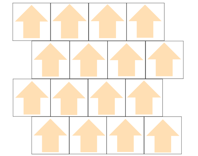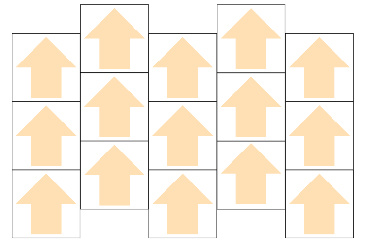 タイルカーペットの向きを揃えつつ、位置をずらして貼る施工方法のことです。