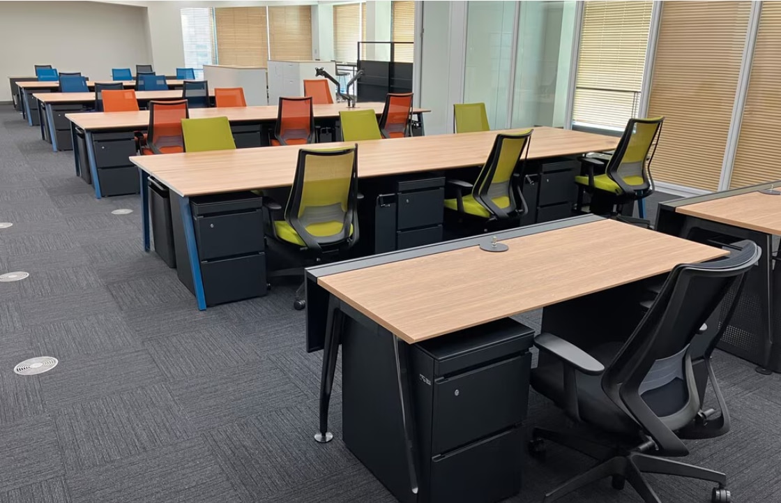 市松貼りは、シンプルで様々なオフィス空間に合わせやすく、汎用性が高いといったメリットがあります。
