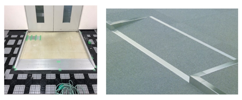 OAフロア設置後、段差ができるため、扉回りは框とスロープを用います。