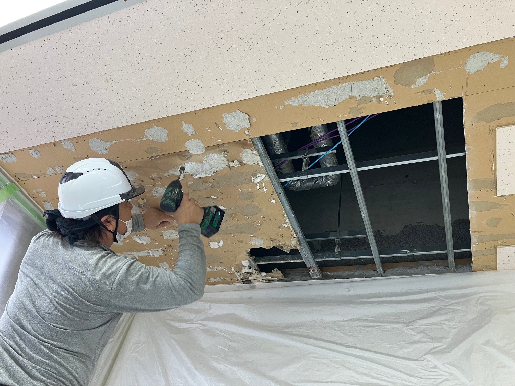 ボードを支える金属製の骨組み(LGS/軽天)を確認し、必要に応じて補強します。