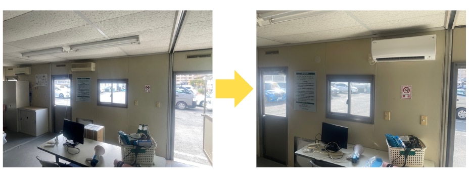 既設の室内機および室外機の撤去・交換作業が完了し、新型機へのリプレイス(置き換え)を実施し、空調環境を改善いたしました。