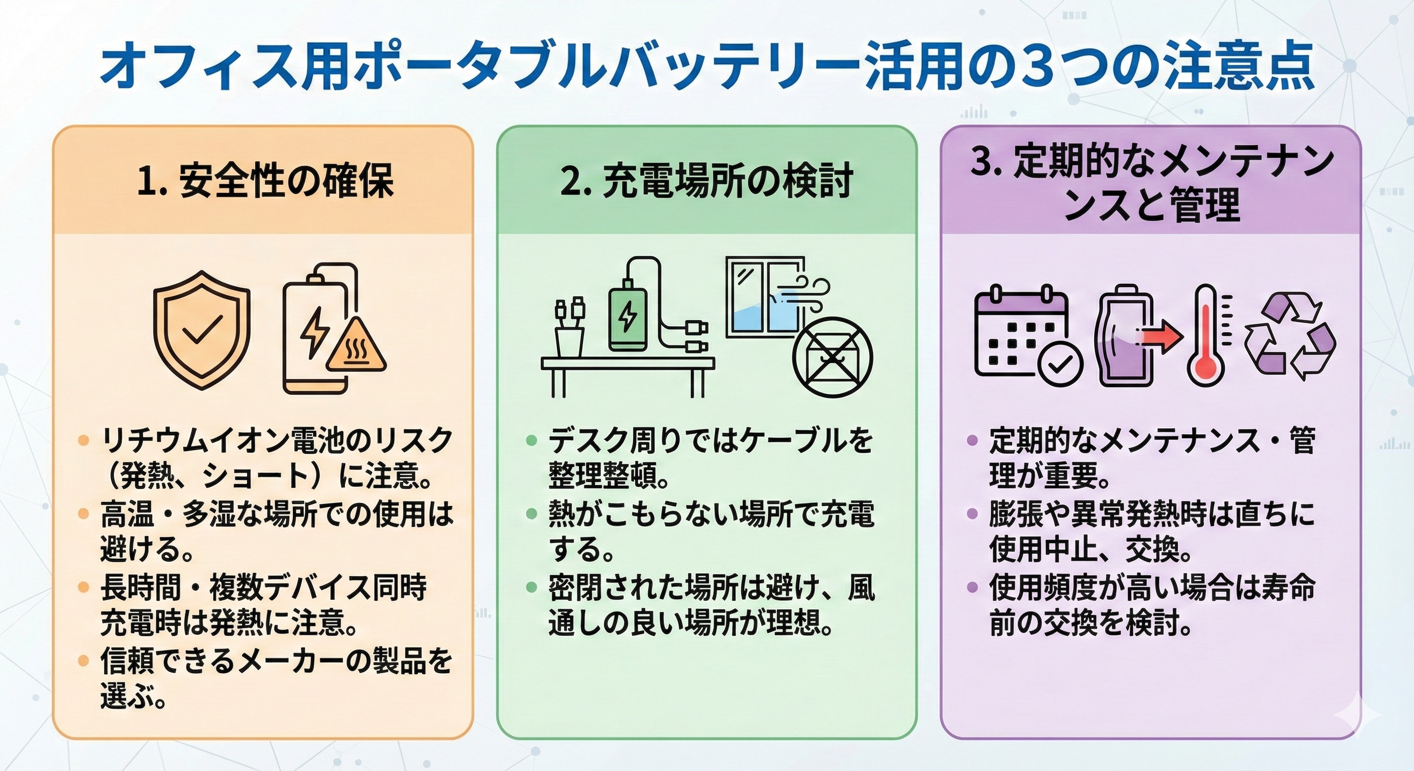 オフィス用ポータブルバッテリーを活用する場合の注意点