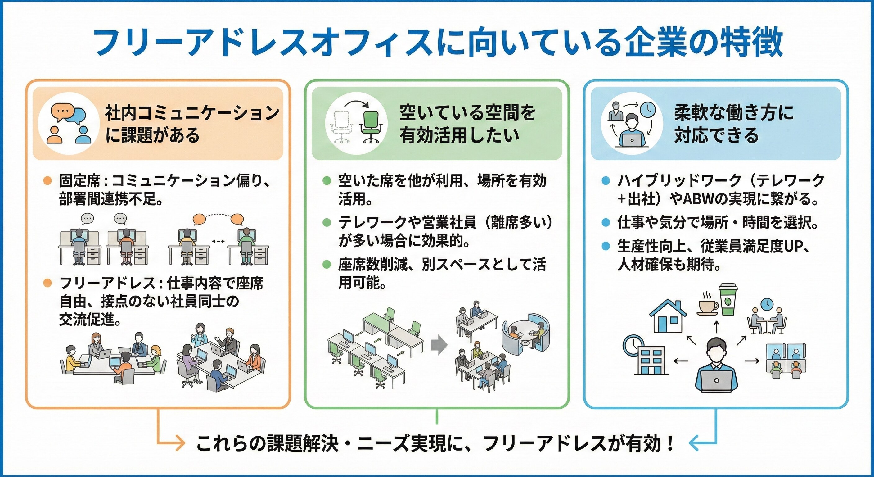 - ・フリーアドレスオフィスに向いている企業の特徴