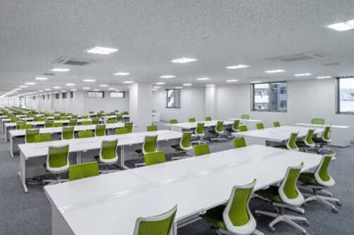 同行式とは、すべてのデスクが同じ方向に向かって配置される方式です。この配置方法は、会議室や研修などで採用されることの多い配置方法です。視線や注意が散乱しにくく、集中しやすい環境を提供できます。