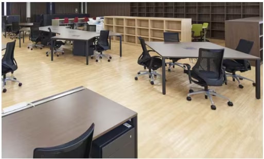 ・木材:木材はオフィスに温かみと自然な雰囲気をもたらします。床や机に使用することで、落ち着きのある空間を演出できます。また、木目の風合いが視覚的に柔らかさを与え、リラックスした環境を提供できます。色や仕上げのバリエーションも豊富で、他の素材と組み合わせやすく、デザインの幅を広げられます。