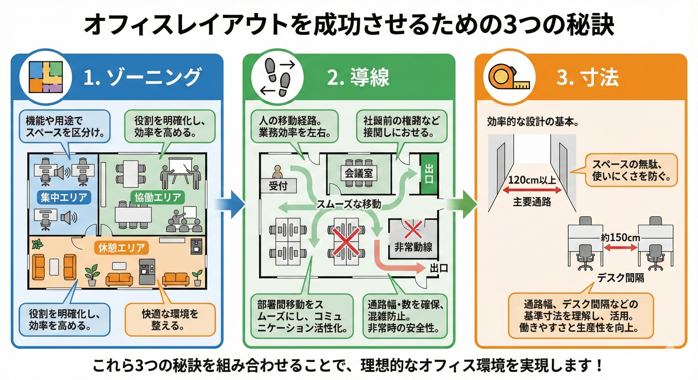 ゾーニングを理解し、適切に配置することで、従業員がより快適に働ける環境を整えることができます。