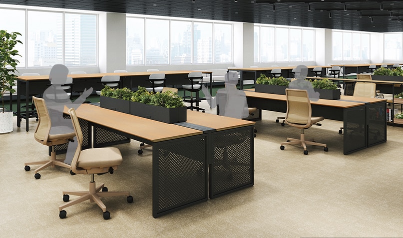 自在にレイアウトでき、人数と目的に最適なワークスペースをつくることができます。