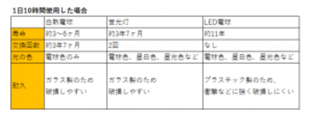 ◆デメリット:明るくしようとすると多くの電力が必要な点と、点灯回数が多いと寿命が短くなる点です。