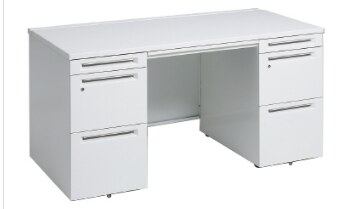 デスクの両サイドにワゴンがついているタイプです。大量の書類を整理して収納できるため、オフィスの空間を有効に活用できます。また、引き出しには鍵をつけられるタイプもあり、セキュリティ対策としても機能します。 作業スペースも広く、収納もたくさんできるため、役員クラスのデスクとして使用されることが多いです。