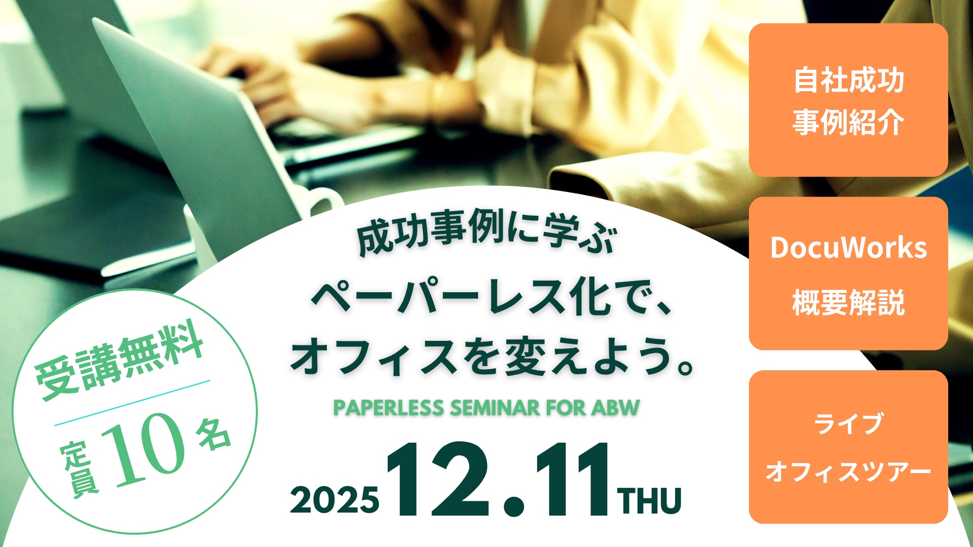 本セミナーでは、ペーパーレス化におすすめのツールから、実際の活用現場、自社の実践プロセスまで、明日から役立つヒントをわかりやすくご紹介します。